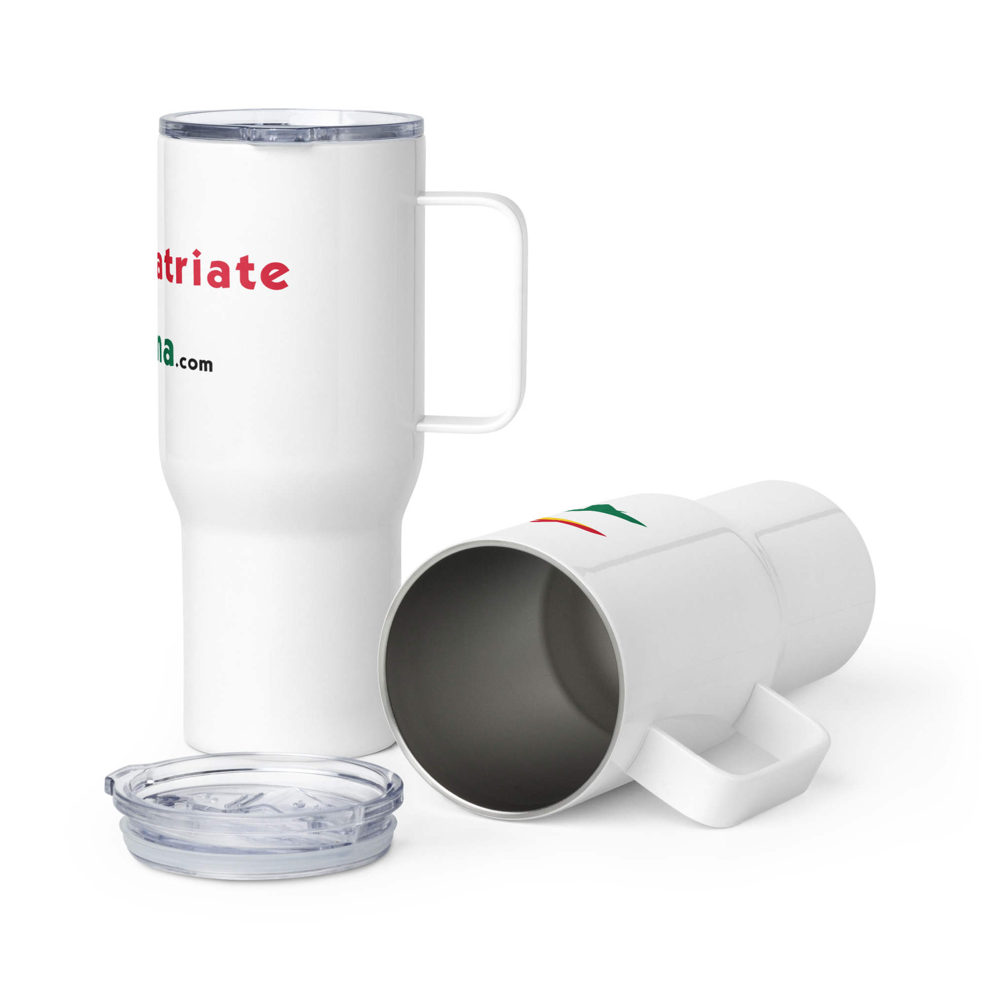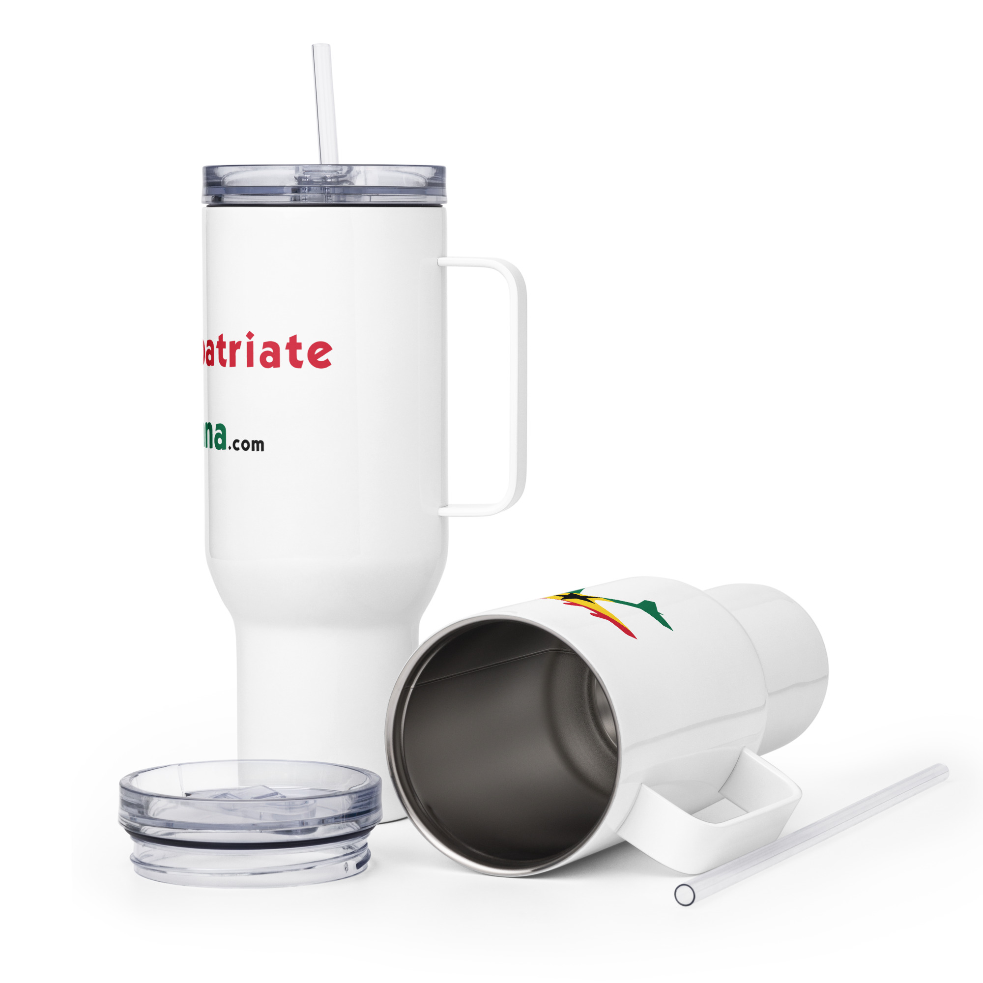 Sip in style and comfort with an elevated RepatriateToGhana.com (R2GH.com) travel mug. With its sleek and durable design, you’ll love taking this mug wherever you go. It fits into most car cup holders and has a spill-proof plastic lid. Commute to work or go on new adventures—this travel mug will keep your beverage safe and at just the right temperature.