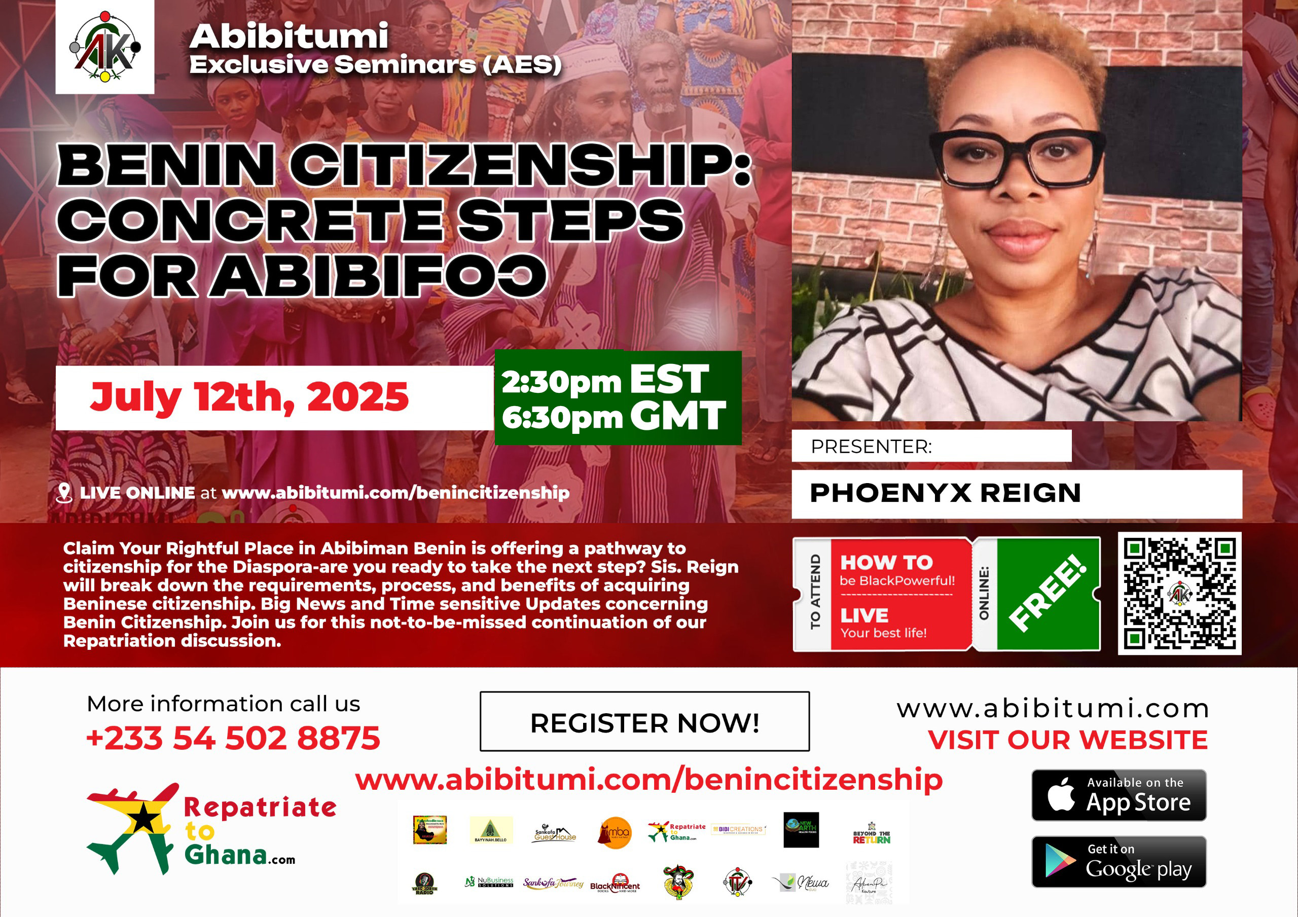 Join Sis Reign for a powerful, informative session that will break down everything you need to know about acquiring Beninese citizenship. This presentation will cover: